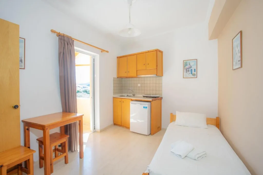 Σε κοντινή απόσταση με τα πόδια από τα διαμερίσματα, θα έχετε την ευκαιρία να εξερευνήσετε τοπικές ταβέρνες, σούπερ μάρκετ και το σημείο εκκίνησης συναρπαστικών εκδρομών, κάνοντας τη διαμονή σας ακόμα πιο άνετη και γεμάτη ευκαιρίες. Κάθε διαμέρισμα, εκτός από την άνετη φιλοξενία, διαθέτει μια ζεστή ιδιωτική βεράντα. Αυτός ο εξωτερικός χώρος σας προσφέρει την ευκαιρία να απολαύσετε τα γεύματά σας στον καθαρό αέρα, βυθισμένοι στην ηρεμία του μεσογειακού μας περιβάλλοντος.